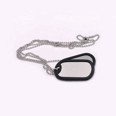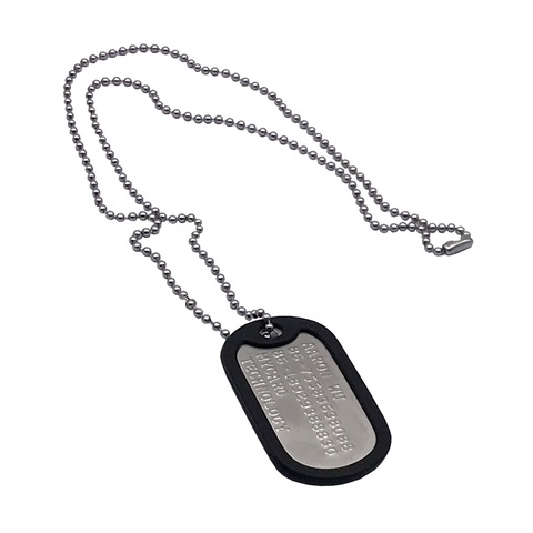 In bianco In Acciaio Inox Dog Tag con Catene e Nero Silenziatore In Gomma